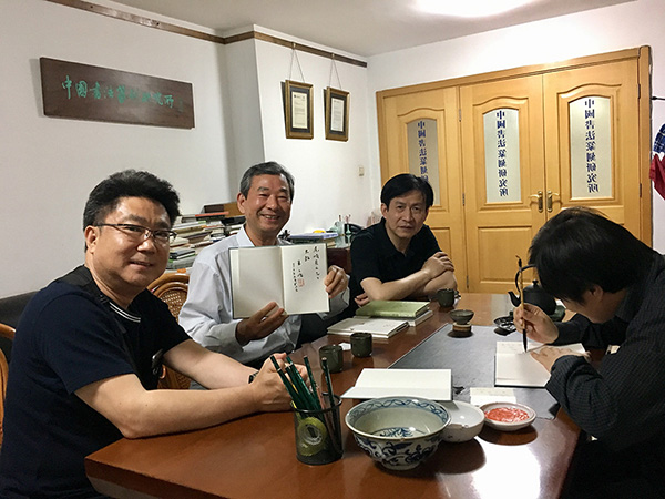 2017年5月15日,日本篆刻家协会常任顾问、前任会长、西泠印社名誉理事尾崎苍石先生、全日本华人书法家协会会长晋鸥先生、日本《金石书学》副主编和田大卿先生等一行访问了北京语言大学中国书法篆刻研究所。所长朱天曙教授对尾崎苍石先生一行表示欢迎。双方进行了学术交流,并对今后日本篆刻家协会与中国书法篆刻研究所开展艺术和学术交流等事宜进行了深入探讨。