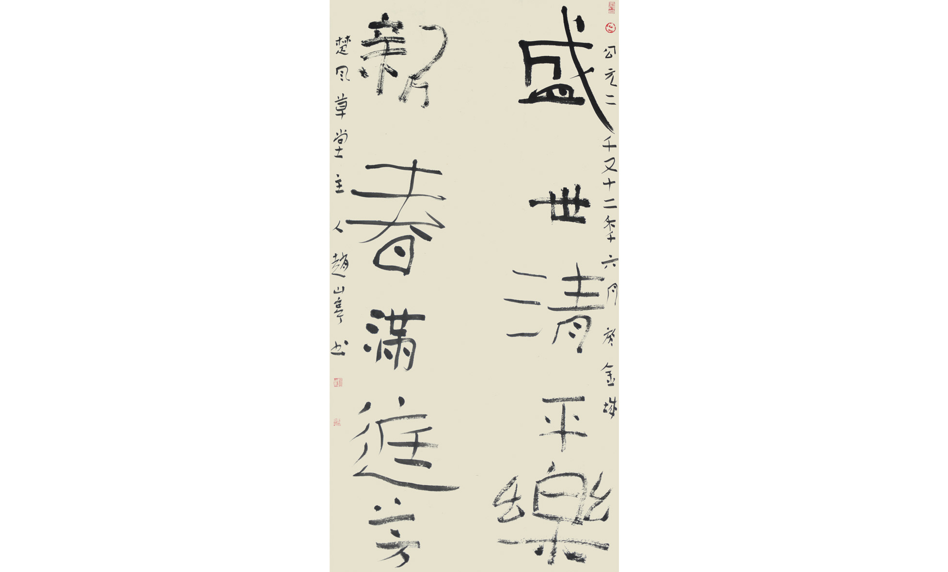 一是对题款用印的控制。一篇书作通常由正文、署款与印章组成。从总体布局看,三者既不可分割,又各有特点。无论哪个处理不当,都会影响整体效果。张大千曾说:吾画一落笔可成,而题署必穷神尽气为之,如题不成,则画毁矣。正文是主体,它决定作品优劣。署款和钤印控制得好可使正文的行气、章法有所补救,或画龙点睛,或焕发神采。控制得不好也可破坏布局。署款及钤印自古有很多成法,需按规律办事。要在与正文协调,款字及印章的多少、大小、位置、字体、印风及内容的选择都应悉心,以期补白精恰适当。否则,便走入江湖一路。好的题款钤印能把正文意思提炼出来,最好的题款钤印能写画外之境、表画外之意、传画外之音。