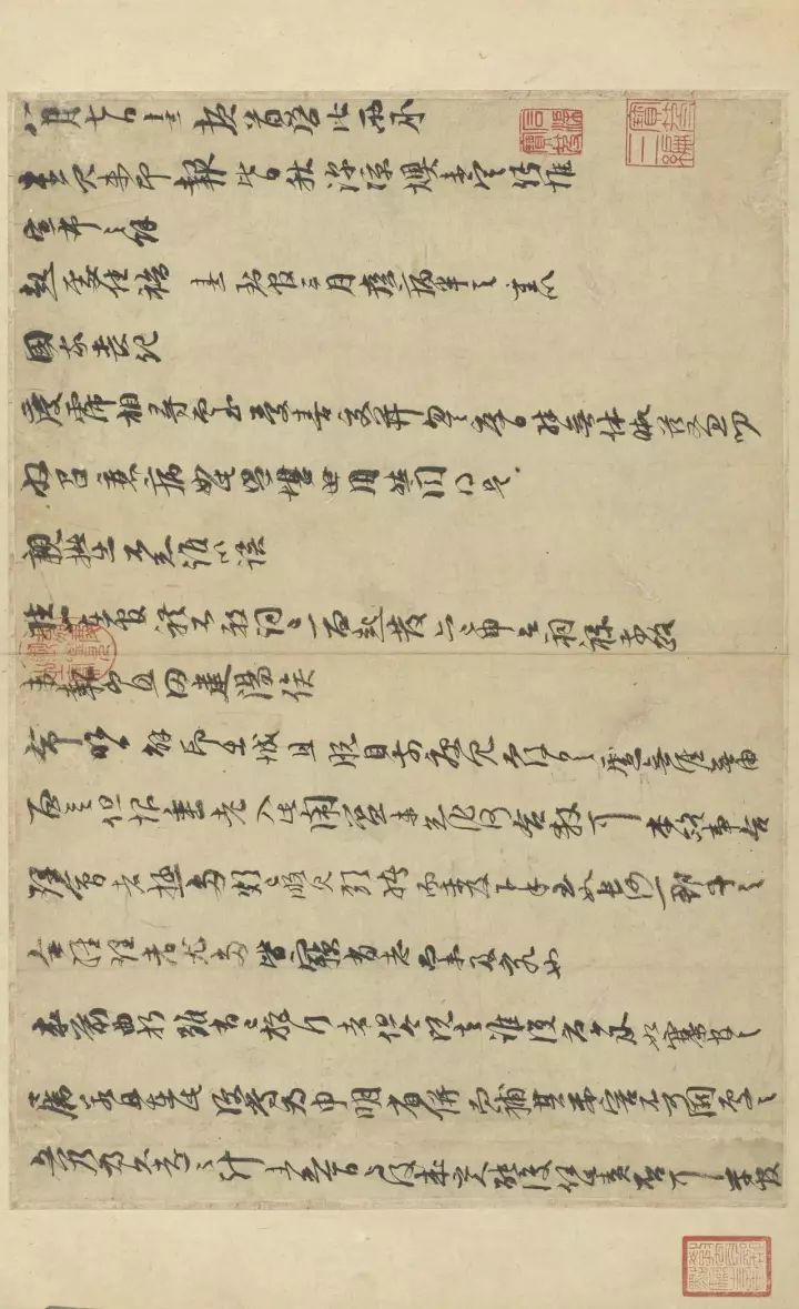 〈快雪時晴帖〉原是一通王羲之書寫的尺牘,以行書為主,兼帶楷書之嚴謹,展現不徐不疾的雍容神態與流利秀美的韻致。由於王羲之真蹟早已不傳,〈快雪時晴帖〉又是唐摹善本,遂成後人理解王羲之書法最重要的視覺資料。此帖品質精良,流傳有緒;帖中有南宋高宗、金章宗、元內府以及明代重要藏家的鑑藏印,為“三希堂”第一珍品。
